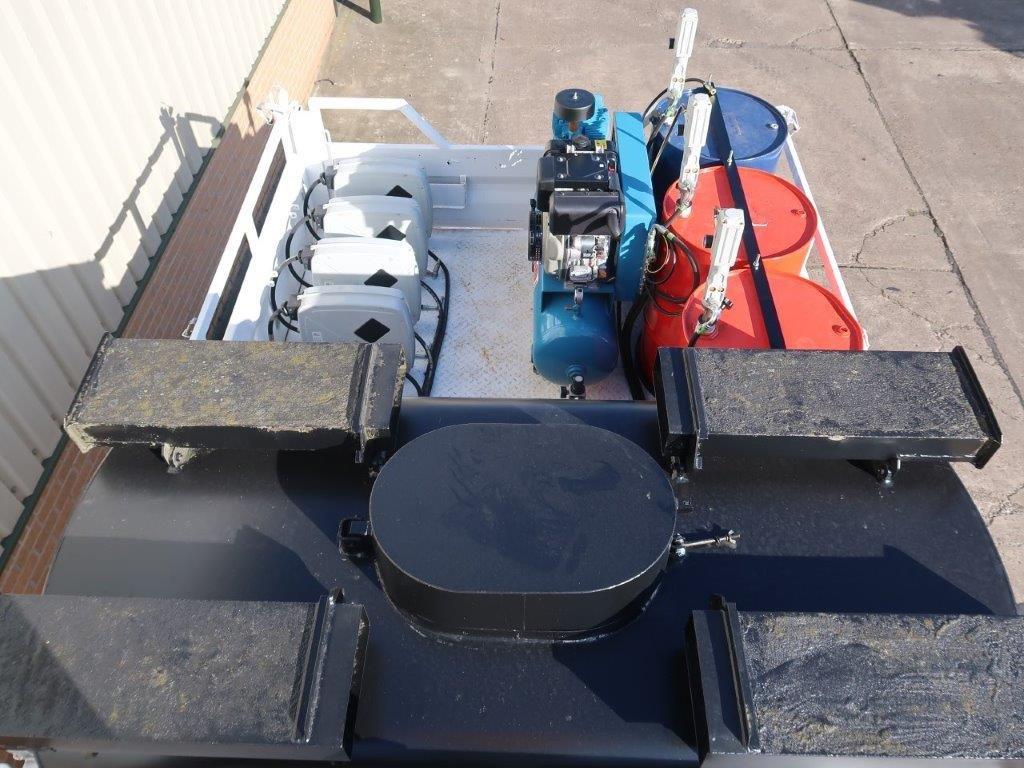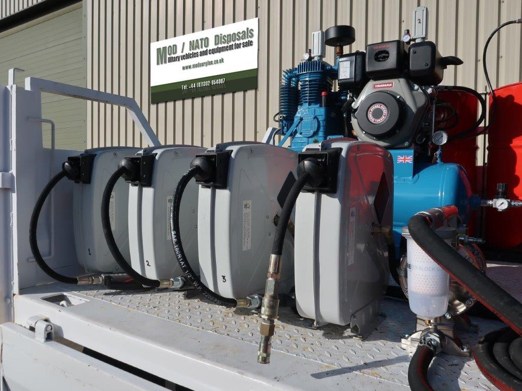 3x 205 litre drums for engine oil, hydraulic oil and gear oil fitted with new air operated pumps and retractable hose reels.