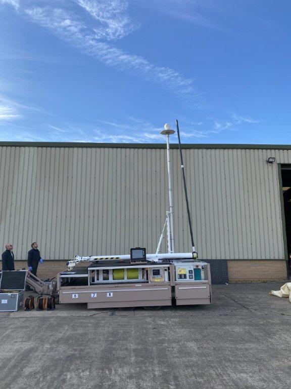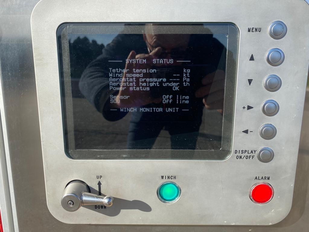 The AIU is suspended from the aerostat which is tethered to the trailer based winch.