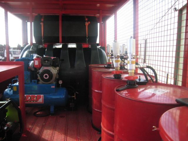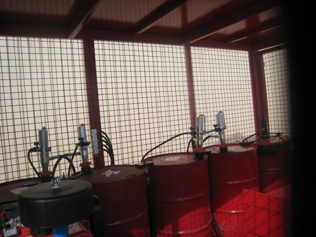 5x 205 litre drums with air operated oil pumps.