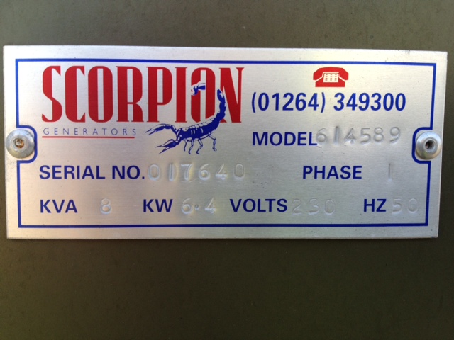 Scorpian 8Kva Single Phase Generator - MoD Ref: 40096