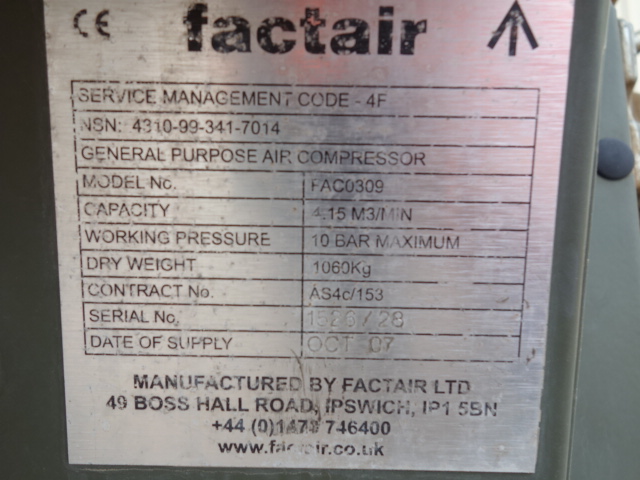 | Factair General Purpose Air Compressor - MoD Ref: 40236 |